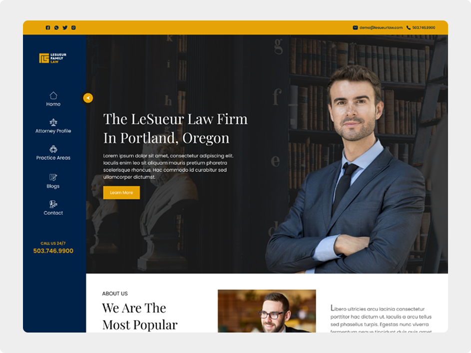 Modern and professional website design for a law firm, featuring a bold hero section, structured navigation, and a strong call-to-action to build trust and authority.